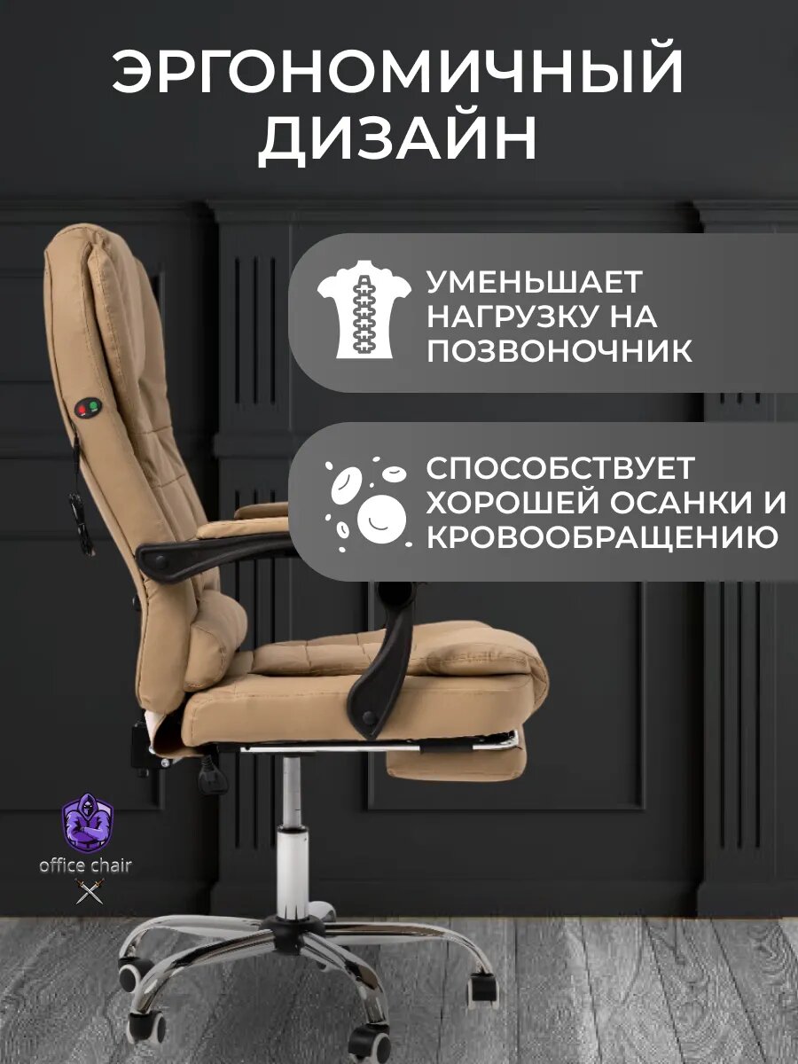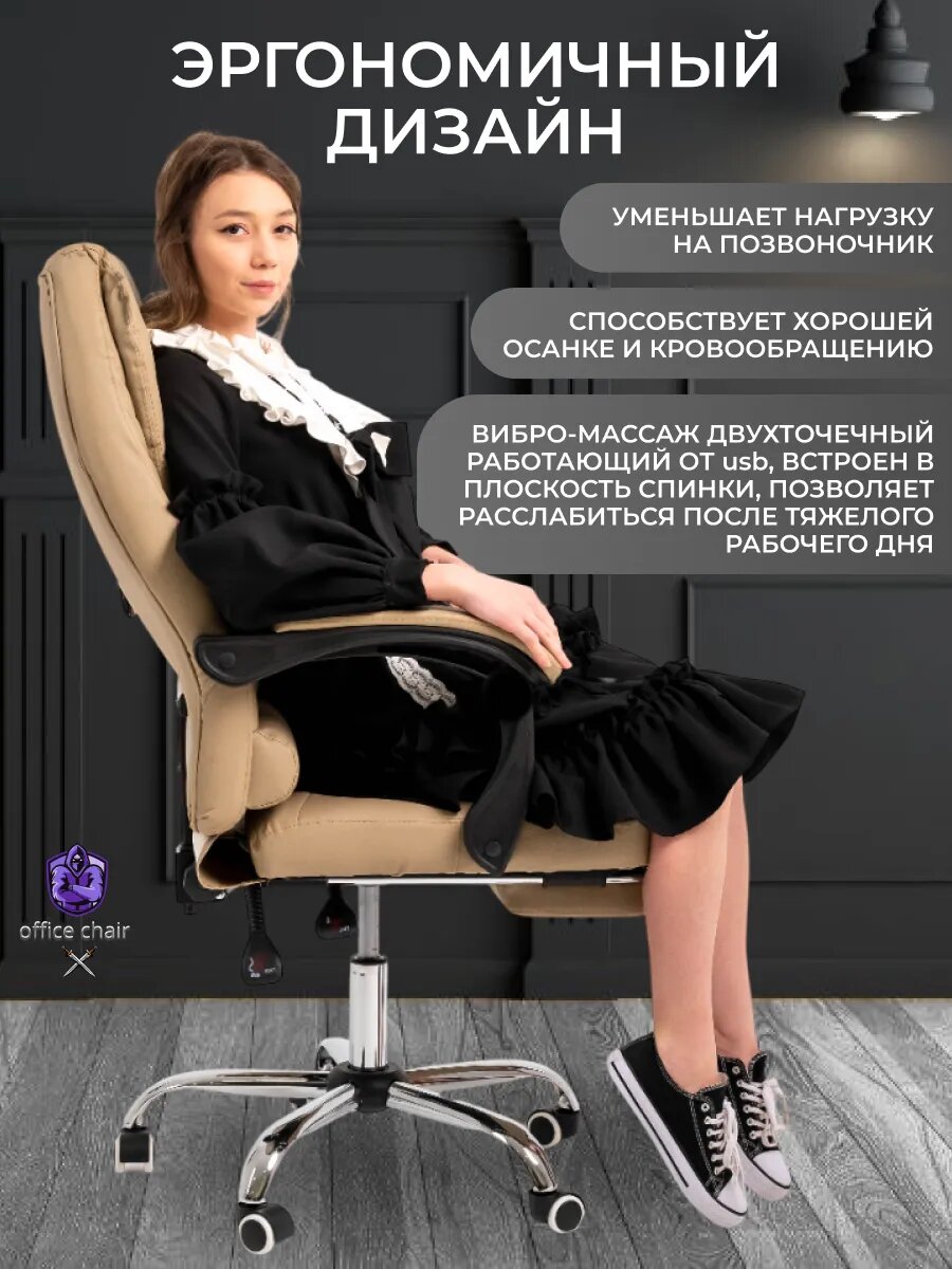 мягкие подлокотники, мягкое сиденье, прорезиненные колесики, фиксация спинки в любом положении, функция массажа