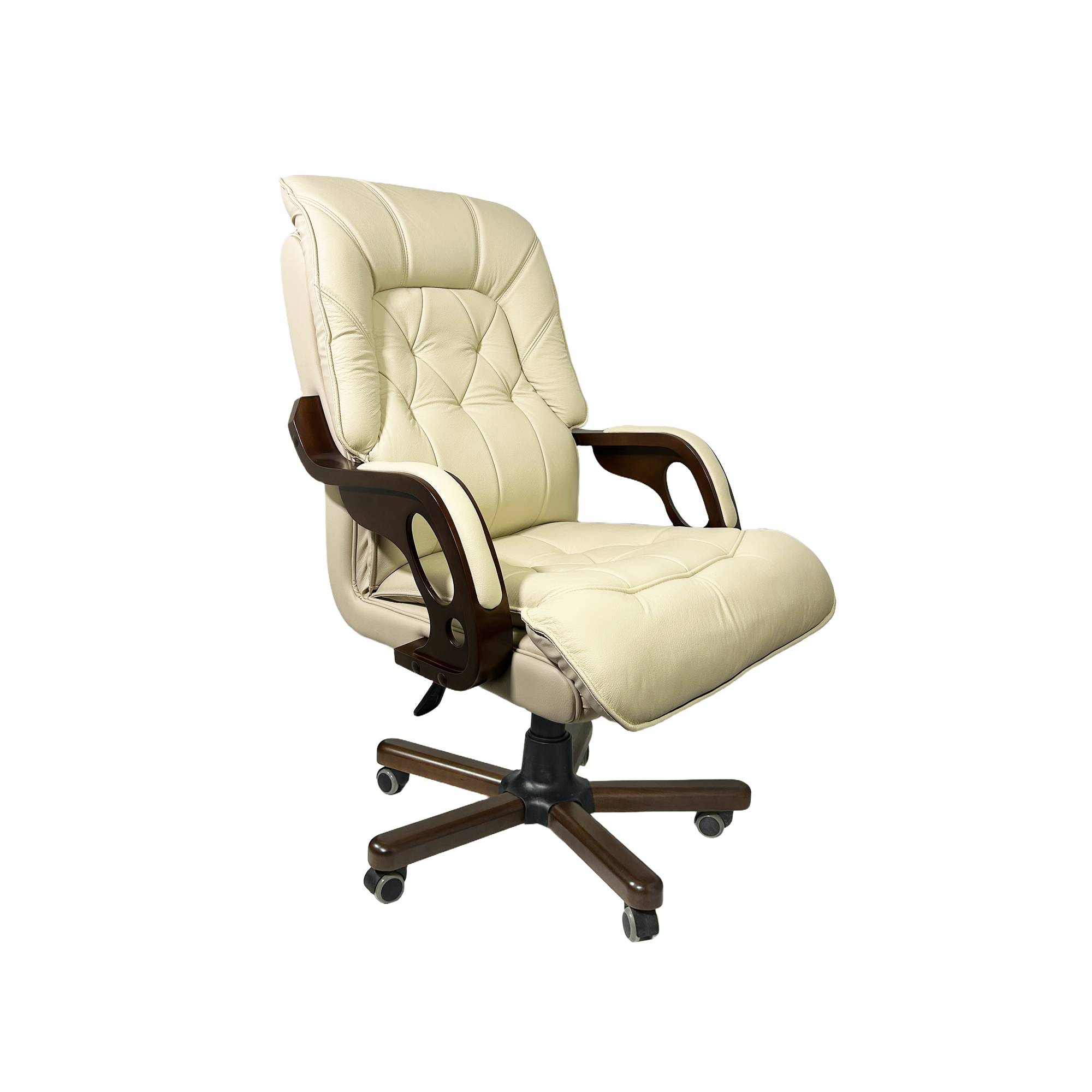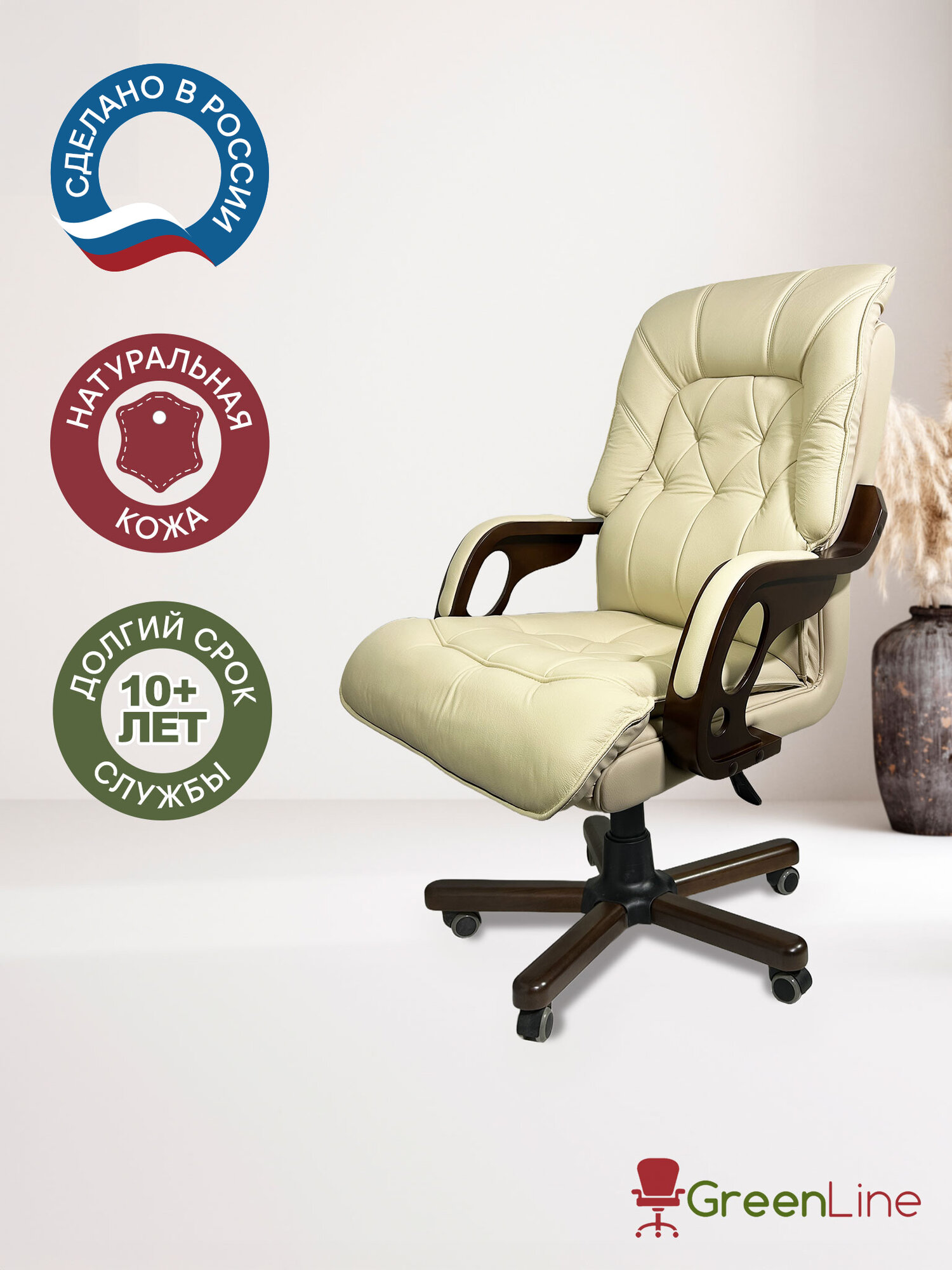 Купить Компьютерное кресло руководителя офисное Сенат, кожаное, дерево, светло-бежевое с доставкой по всей России.