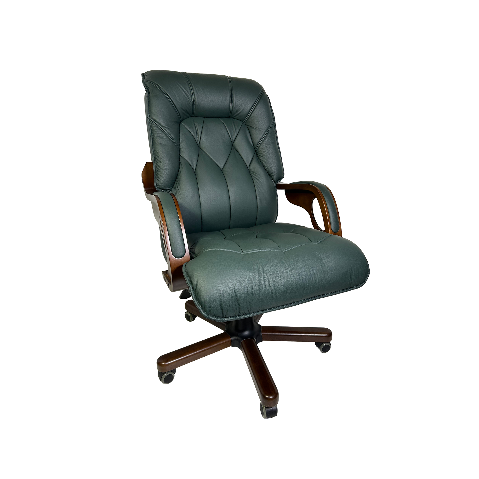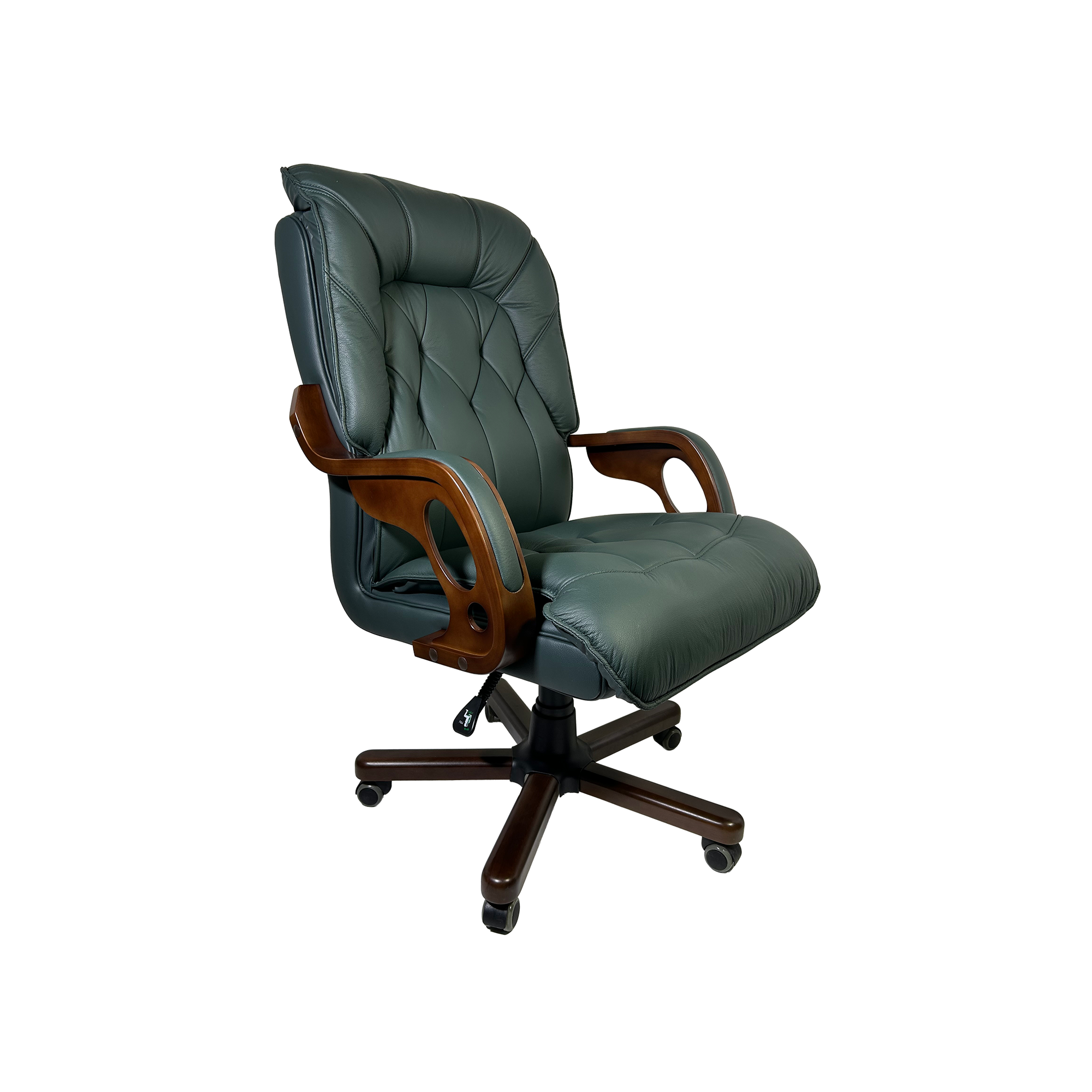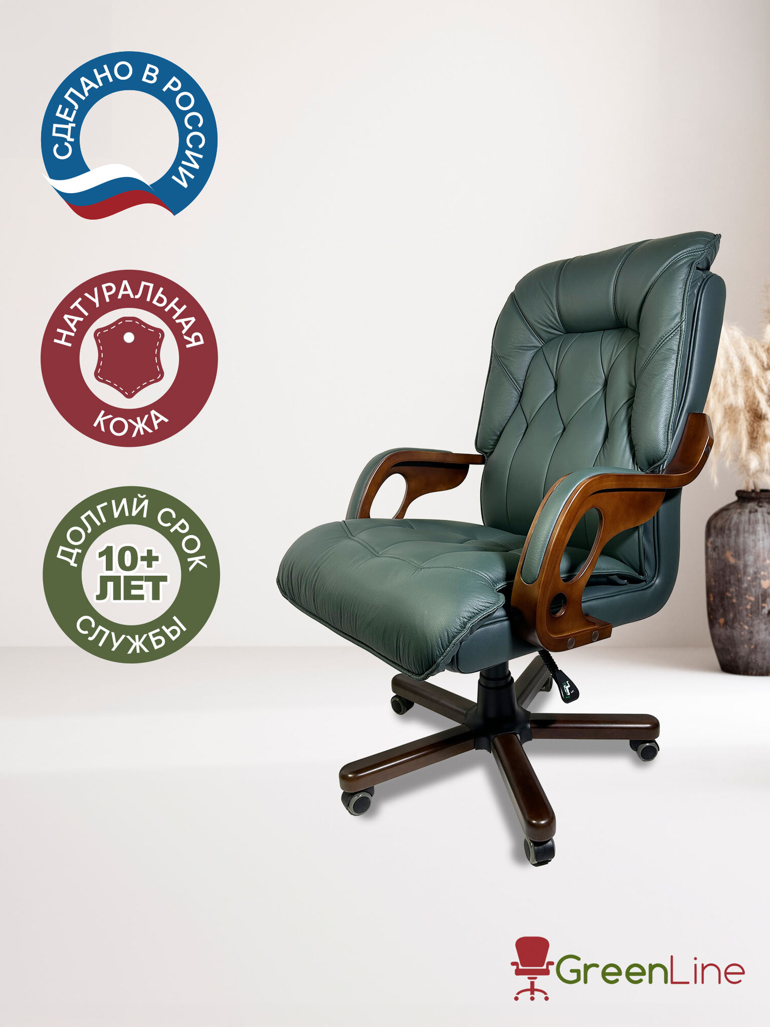 Купить Компьютерное кресло руководителя офисное Сенат, кожаное, 150 кг, дерево, зеленое (Verde) с доставкой по всей России.
