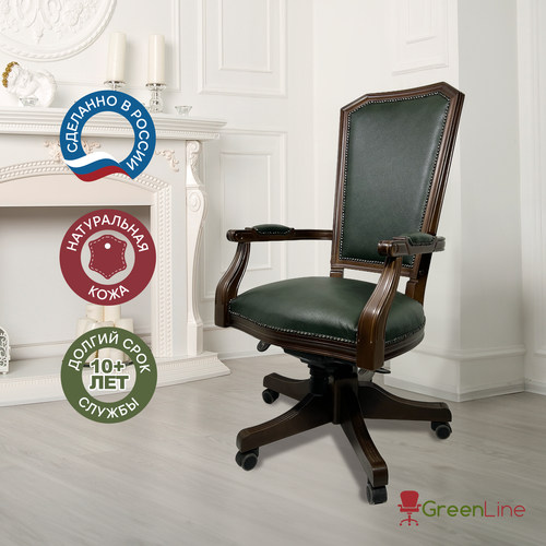 Купить Офисное кресло руководителя Версаль, натуральная кожа, массив дерева, зеленое (Pino kelato) с доставкой по всей России.