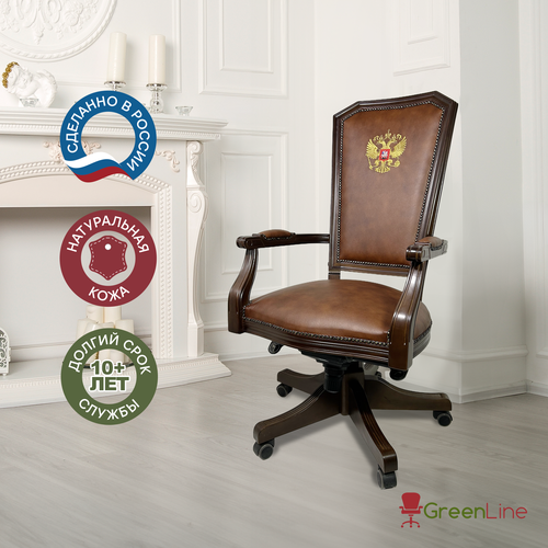 Офисное кресло руководителя Версаль с гербом, кожа, массив дерева (цвет тёмный орех), светло-коричневое: сравнение цен, характеристики, фото, актуальное наличие и цены.