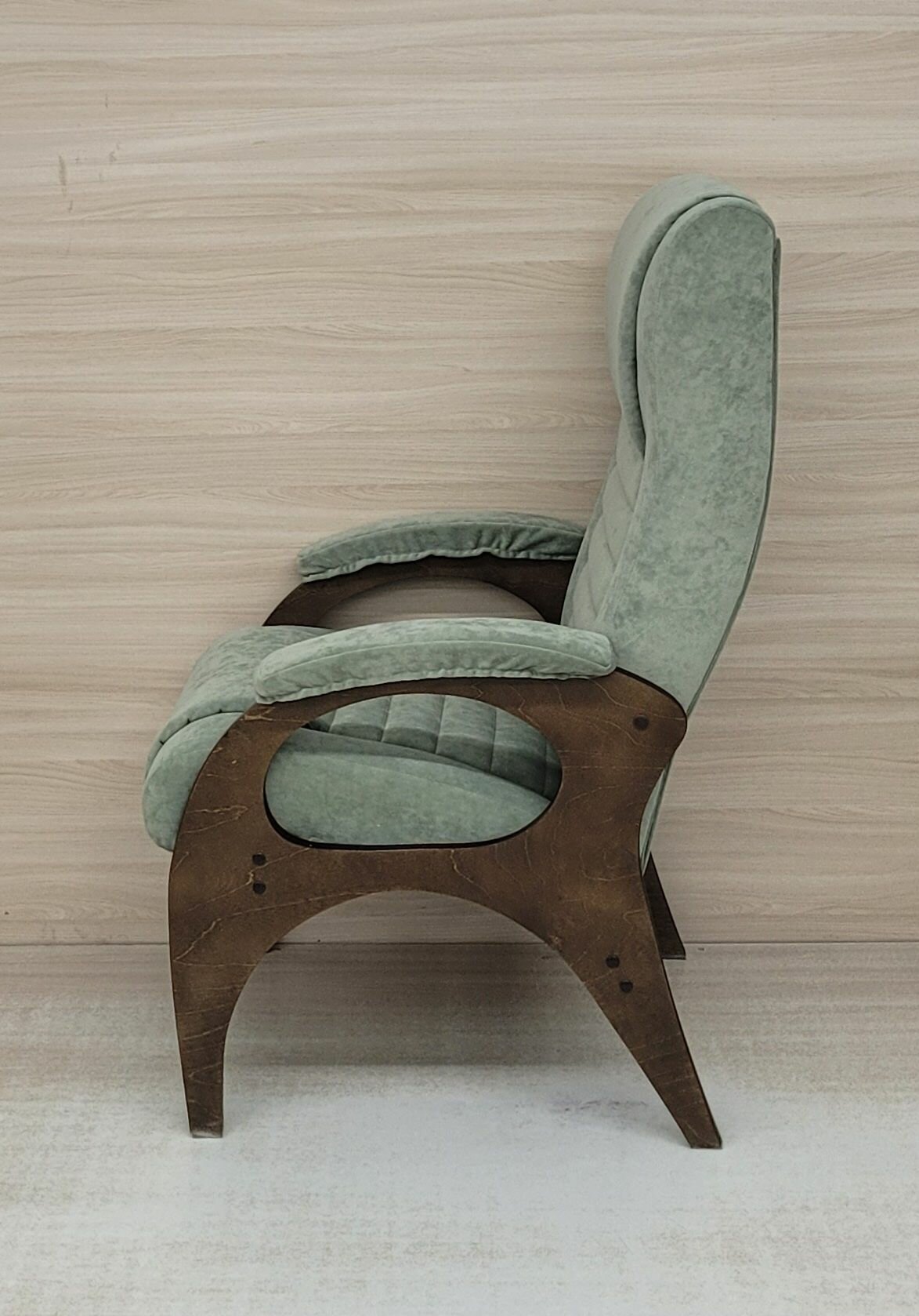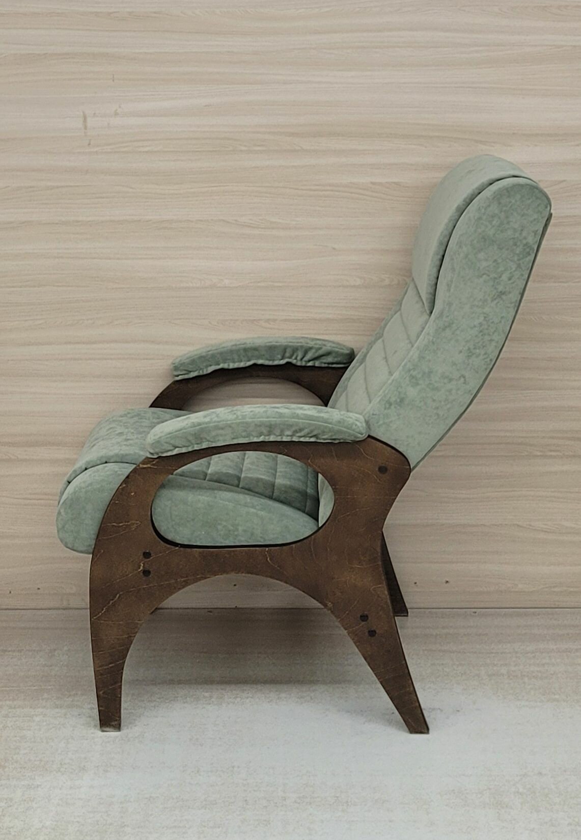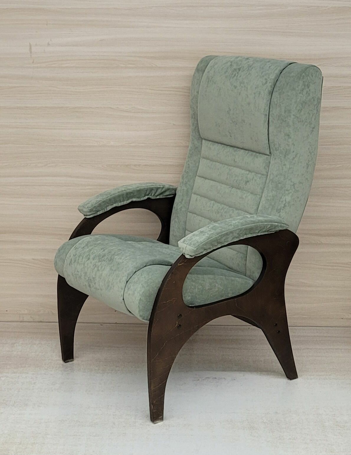 Кресло "Уют" имеет классический вид и компактные габариты, что позволяет использовать эту модель в любом помещении. Главная особенность кресла - раскладной механизм откидывания спинки, обеспечивающий регулируемое положение в 3-х позициях. Механизм надежный и простой в использовании. Конструкция позволяет принимать удобное положение, спинка выставляется в разные позиции, поэтому вы найдете оптимальное решение, позволяющее расслабиться. Каркас, ножки и подлокотники изготовлены из березовой фанеры, наполнитель поролон, обивка велюр. Кресло не тяжелое, вес 13 кг. Отлично подходит для отдыха после рабочего дня, просмотра телевизора, чтения любимой книги, размещения гостей. Кресло подойдет к любому интерьерному стилю, идеально впишется в любой дизайн. Кресло в доме должно быть максимально уютным, комфортным и качественным!