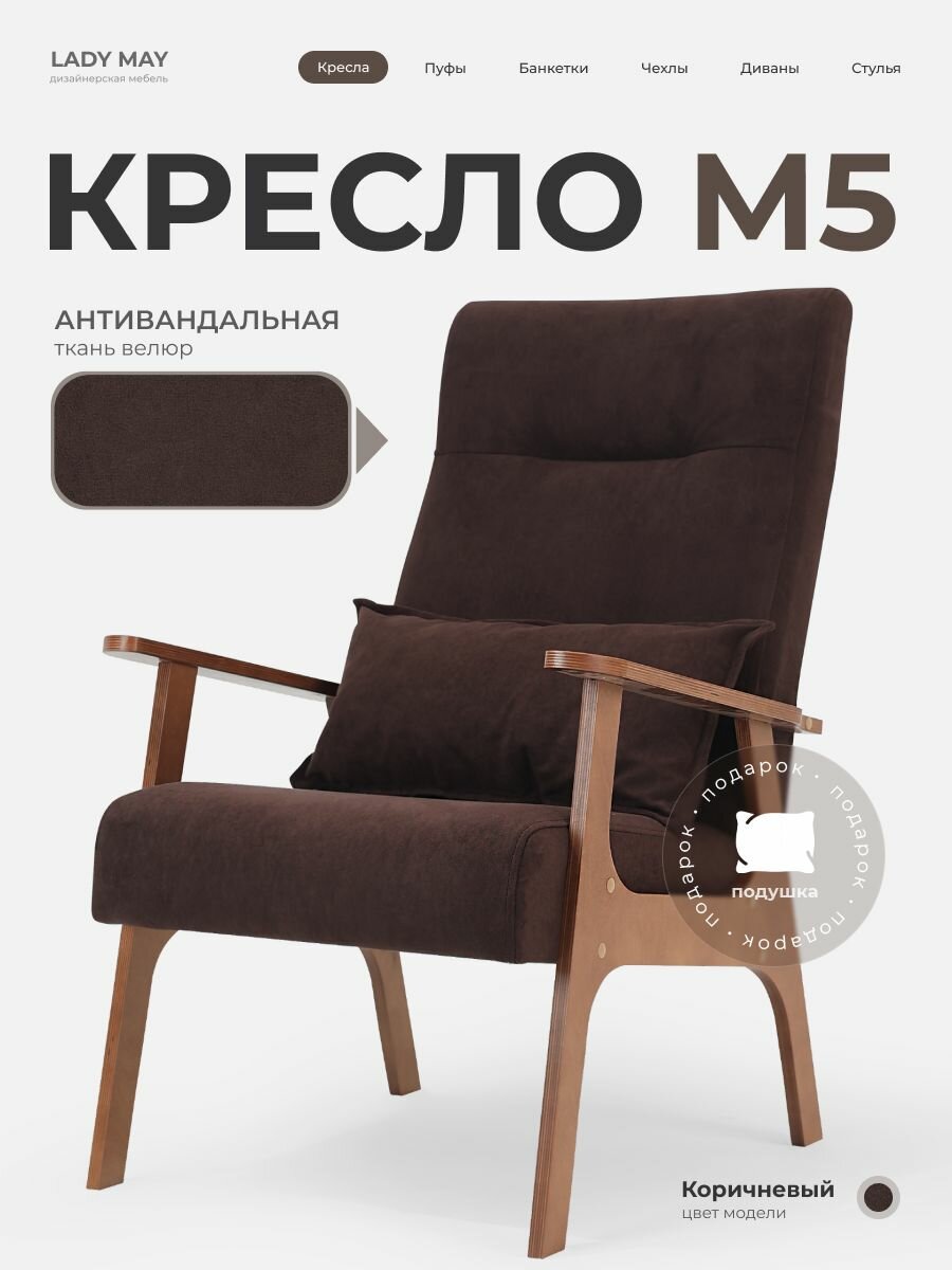 Кресло с подушкой на деревянных ножках с подлокотниками, Велюр, LADY MAY: сравнение цен, характеристики, фото, актуальное наличие и цены.