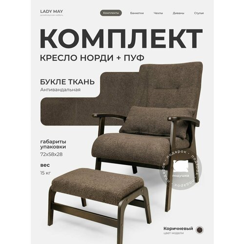 Кресло с пуфом «Норди» мягкое для дома на балкон, Букле: сравнение цен, характеристики, фото, актуальное наличие и цены.