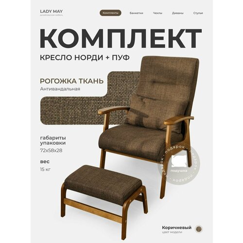 Кресло с пуфом "Норди" мягкое для дома на балкон, Рогожка Стильный комплект — кресло и пуф "Норди" — идеальное решение для гостиной, спальни, кабинета, балкона или детской. Эргономичная форма кресла обеспечивает максимальный комфорт и поддержку спины. Материал обивки — мягкая и износостойкая рагожка, устойчивая к пятнам и легкая в уходе. Каркас изготовлен из прочного березового шпона и ДСП, детали с защитно-декоративным покрытием в 3 слоя. Пуф можно использовать как подставку для ног или дополнительное сиденье. Преимущества: Высокая износостойкость и простой уход Устойчивость к пятнам, гипоаллергенный материал Идеально подходит для семей с детьми и питомцами Классический дизайн, подходящий для любых стилей