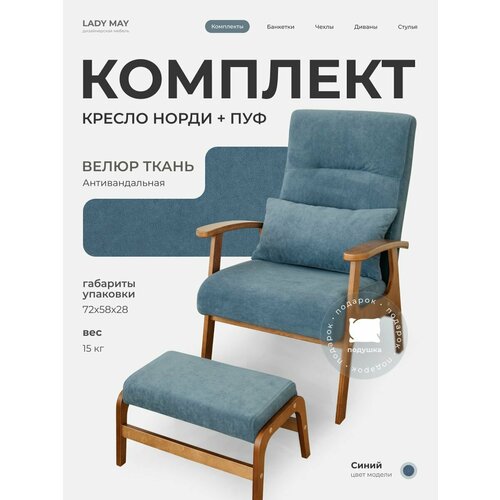Кресло с пуфом «Норди» мягкое для дома на балкон, Велюр: сравнение цен, характеристики, фото, актуальное наличие и цены.