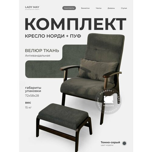 Кресло с пуфом «Норди» мягкое для дома на балкон, Велюр: сравнение цен, характеристики, фото, актуальное наличие и цены.