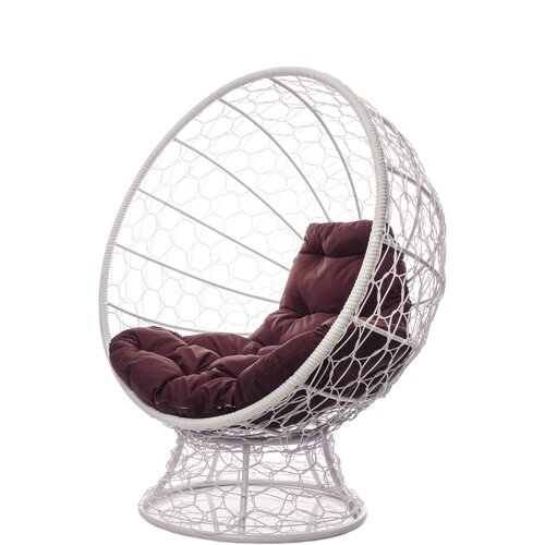 Кресло M-group кокос на подставке с ротангом белое, коричневая подушка