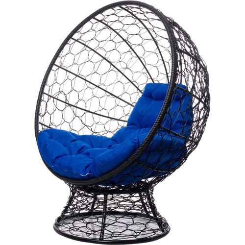 Купить Кресло M-group кокос на подставке с ротангом чёрное, синяя подушка с доставкой по всей России.