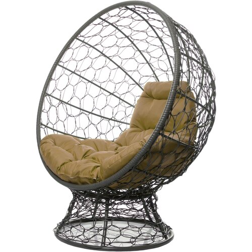 Кресло садовое M-Group Кокос на подставке ротанг серый 11590301 бежевая подушка