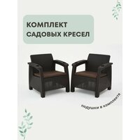 Кресло садовое. Набор из 2-х кресел «Ротанг» мокко, подушки коричневого цвета: сравнение цен, характеристики, фото, актуальное наличие и цены.