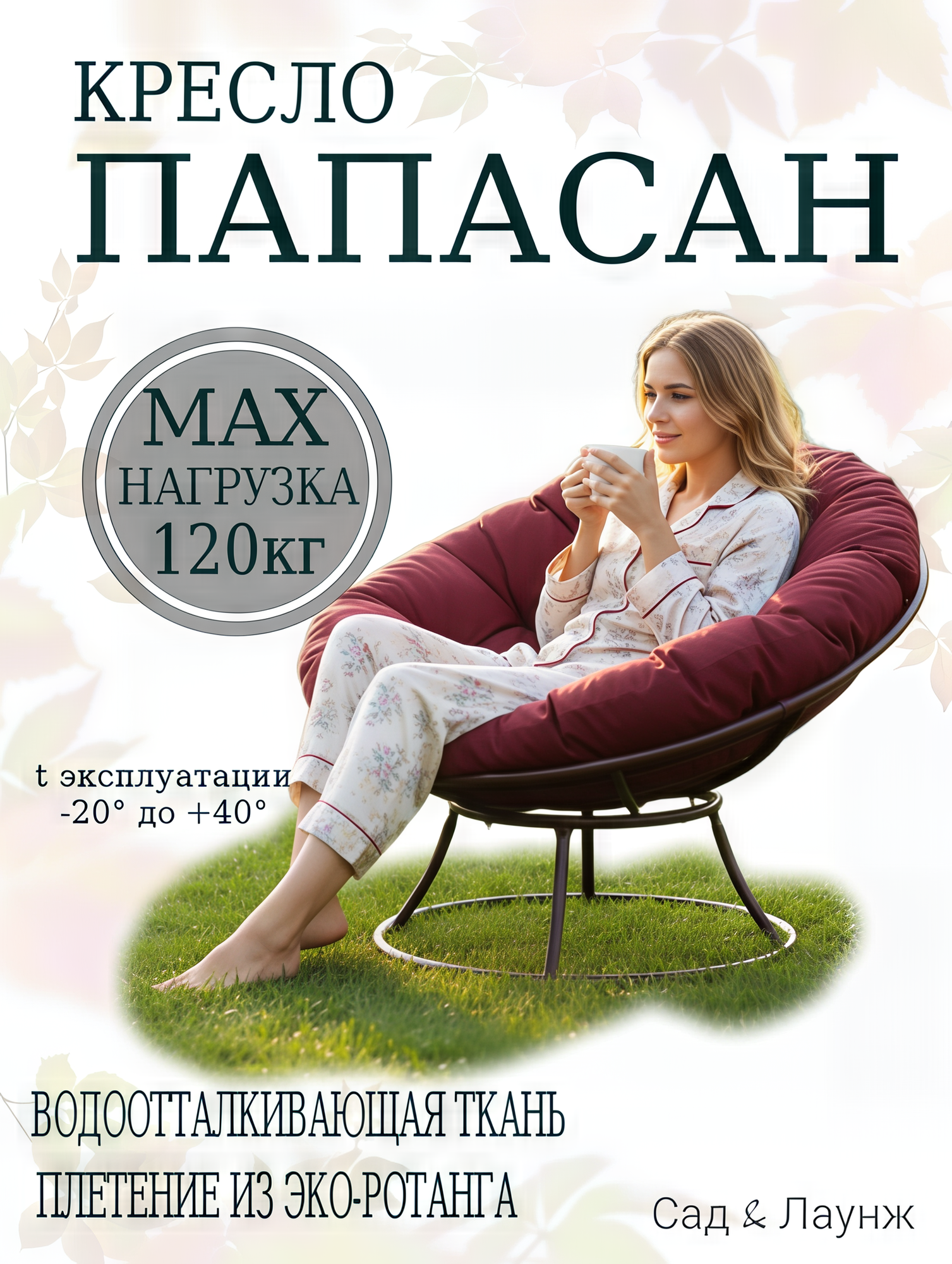 Кресло садовое папасан без ротанга коричневое, бордовая подушка Ш×Г×В : 98×98×75: сравнение цен, характеристики, фото, актуальное наличие и цены.