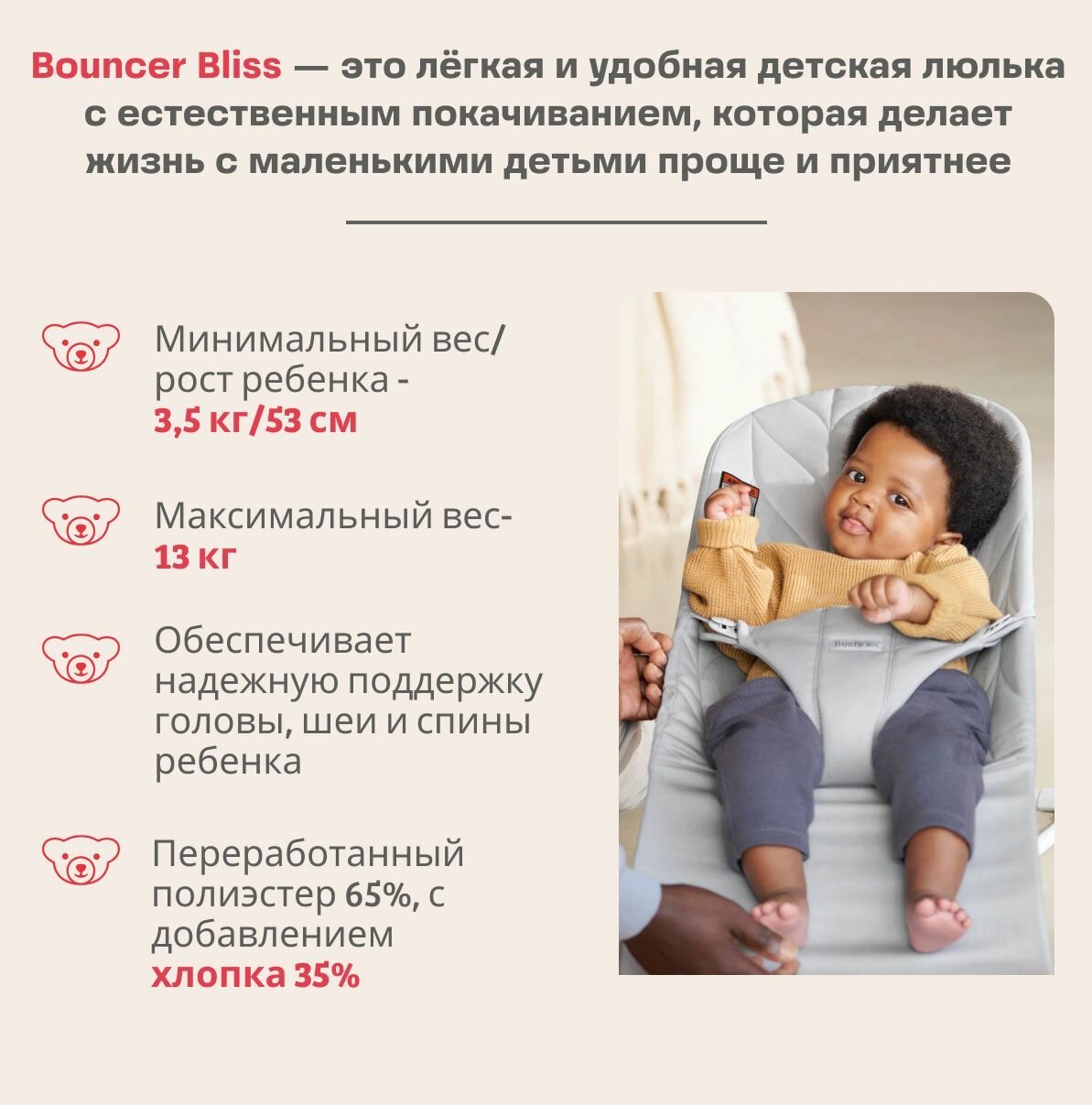 Купить Шезлонг для новорожденных BabyBjorn детское кресло качалка Bliss Cotton Light Grey с доставкой по всей России.