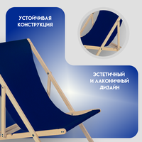 Купить Кресло-шезлонг «Березка» без шлифовки с тёмно-синей тканью складной для дома и для дачи с доставкой по всей России.