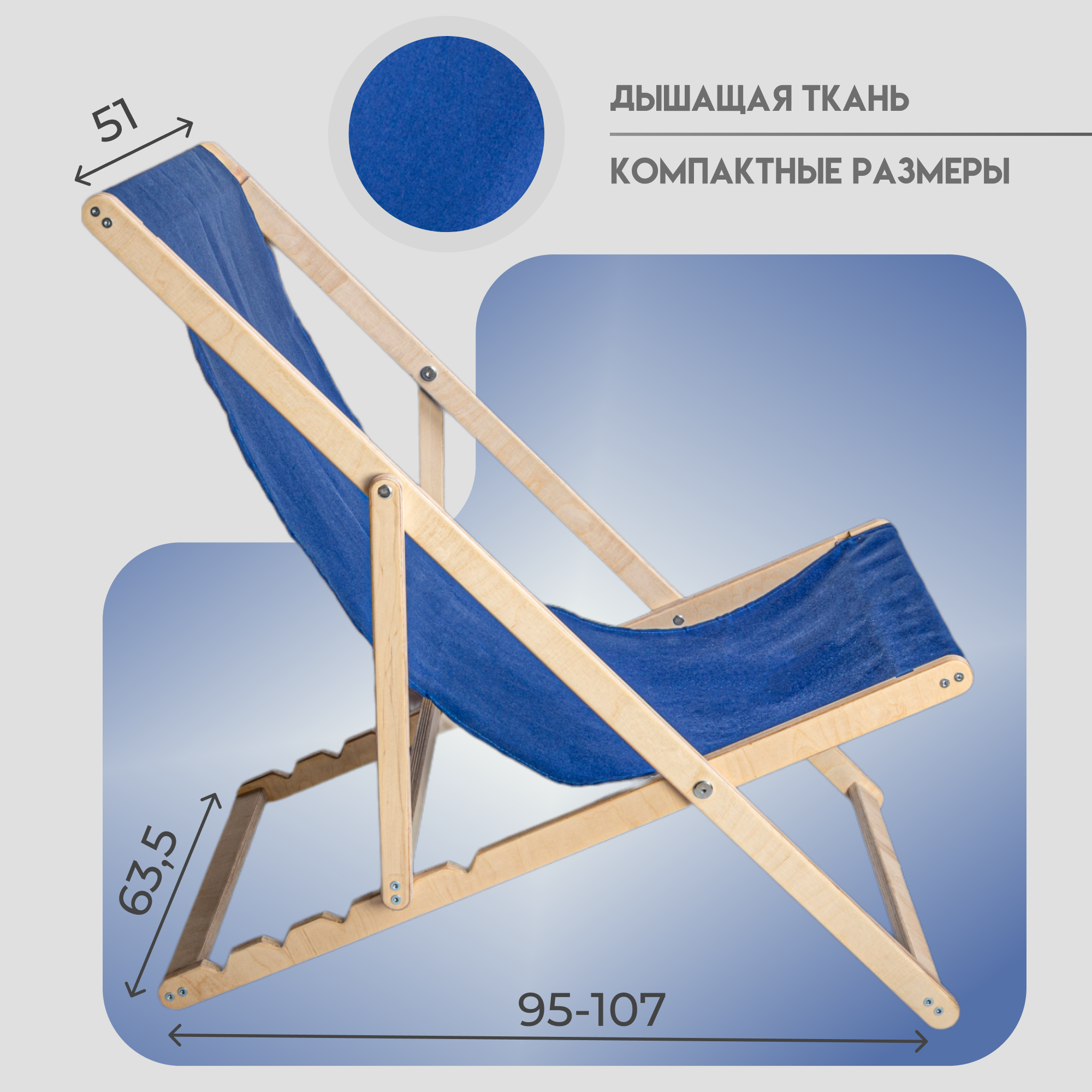 Кресло-шезлонг «Берёзка» без шлифовки с синей тканью складной для дома и дачи: сравнение цен, характеристики, фото, актуальное наличие и цены.