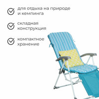 Складное кресло-шезлонг отлично дополнит любой отдых на свежем воздухе. Изделие оснащено подножкой и спинкой, которые легко фиксируются в удобном для вас положении. В комплекте есть подушка и матрас, создающие дополнительный комфорт.