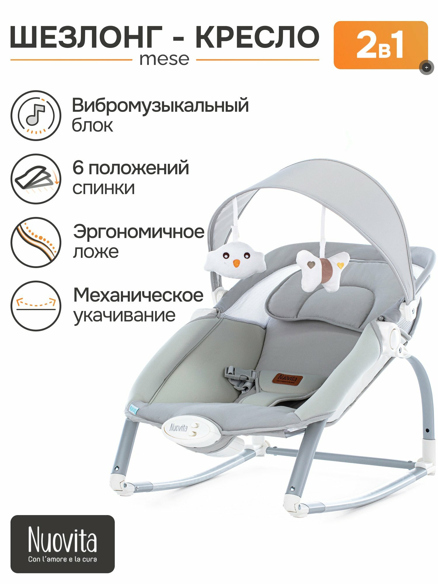 Кресло-шезлонг Nuovita «Mese», от 0 месяцев, серый, складной, с функцией вибрации: сравнение цен, характеристики, фото, актуальное наличие и цены.