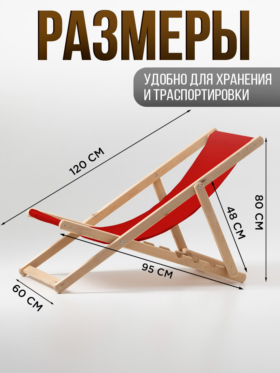 Купить Шезлонг для дачи складной, с красной тканью БЕРЕЗА МАССИВ — НЕ ФАНЕРА на пляж, на пикник с доставкой по всей России.