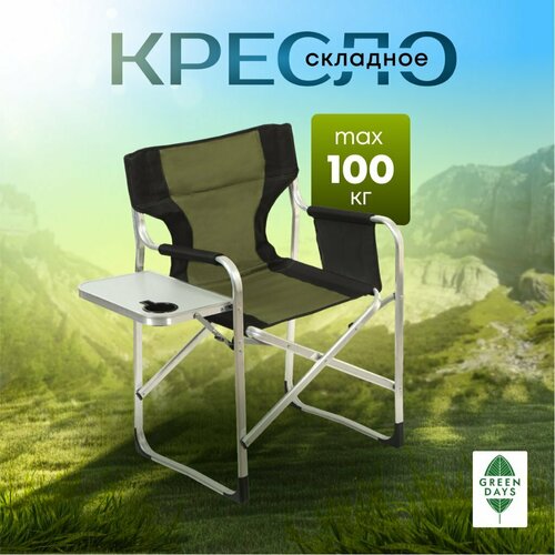 Купить Кресло складное туристическое с подлокотниками, до 100 кг, 60х55х82 см, черно-зеленое, со столиком, Green Days, YTDC024 с доставкой по всей России.