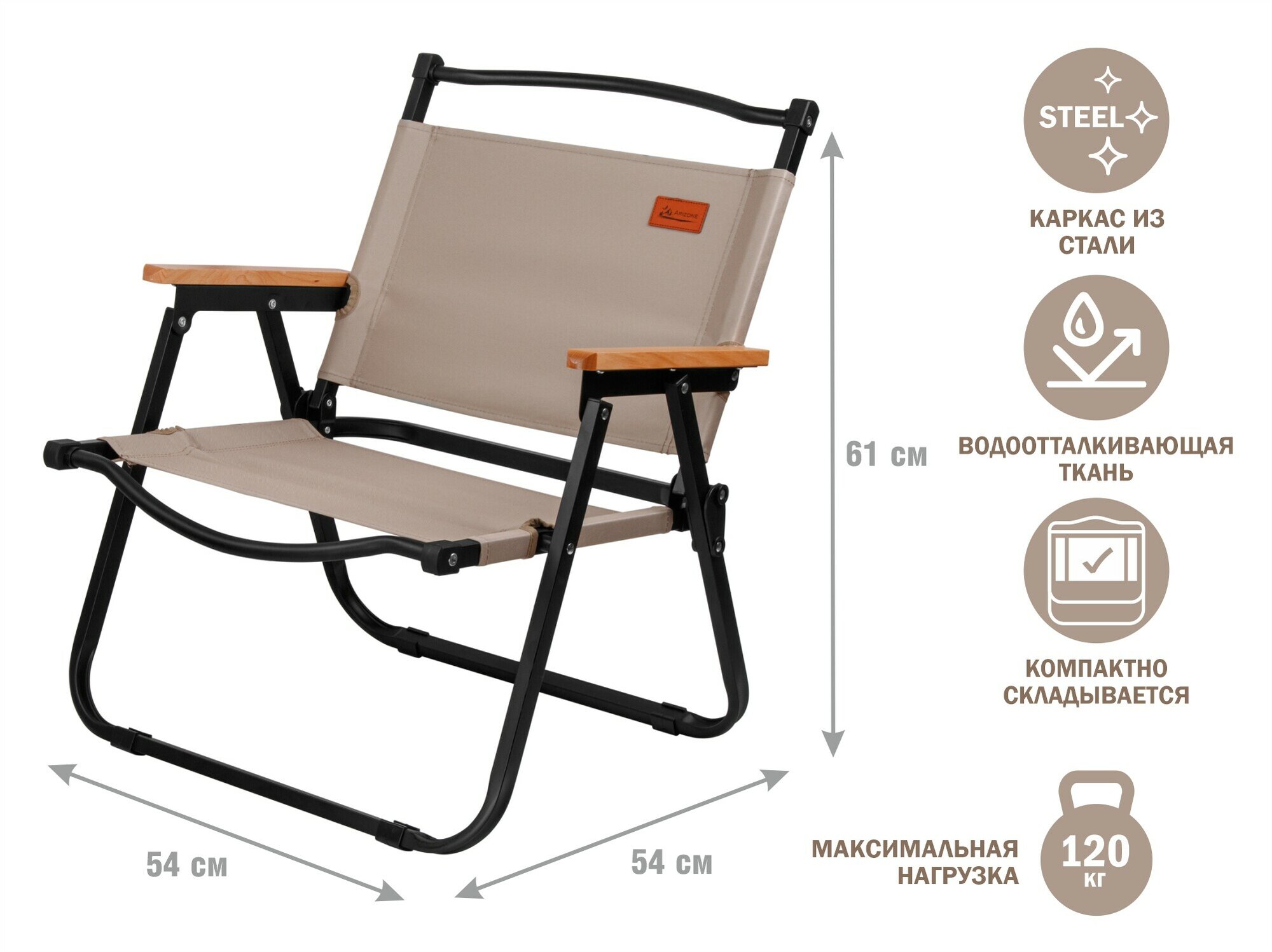 Кресло имеет складную конструкцию, что облегчает его транспортировку и хранение. Вес кресла составляет всего 2,5 кг, а максимальная нагрузка - 120 кг.