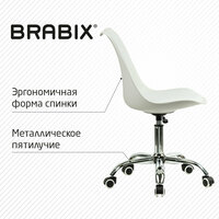 Купить Кресло компьютерное, стул офисный на колесиках для взрослого и школьника, хром, пластик белый, экокожа белая, Brabix Eames MG-310 CH, 532923 с доставкой по всей России.
