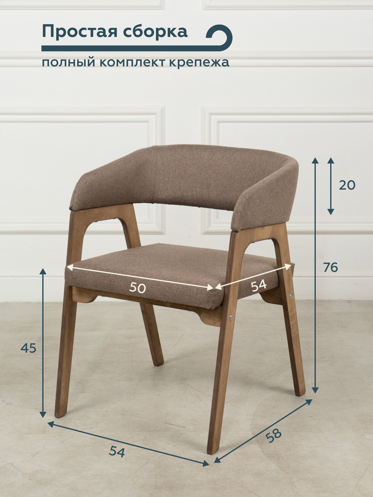 Кресло-стул "Лунница" имеет размеры 54х58х76 см, что делает его удобным и компактным для использования в небольших помещениях. Благодаря своим размерам, оно легко собирается и разбирается, что позволяет без труда перемещать его при необходимости.