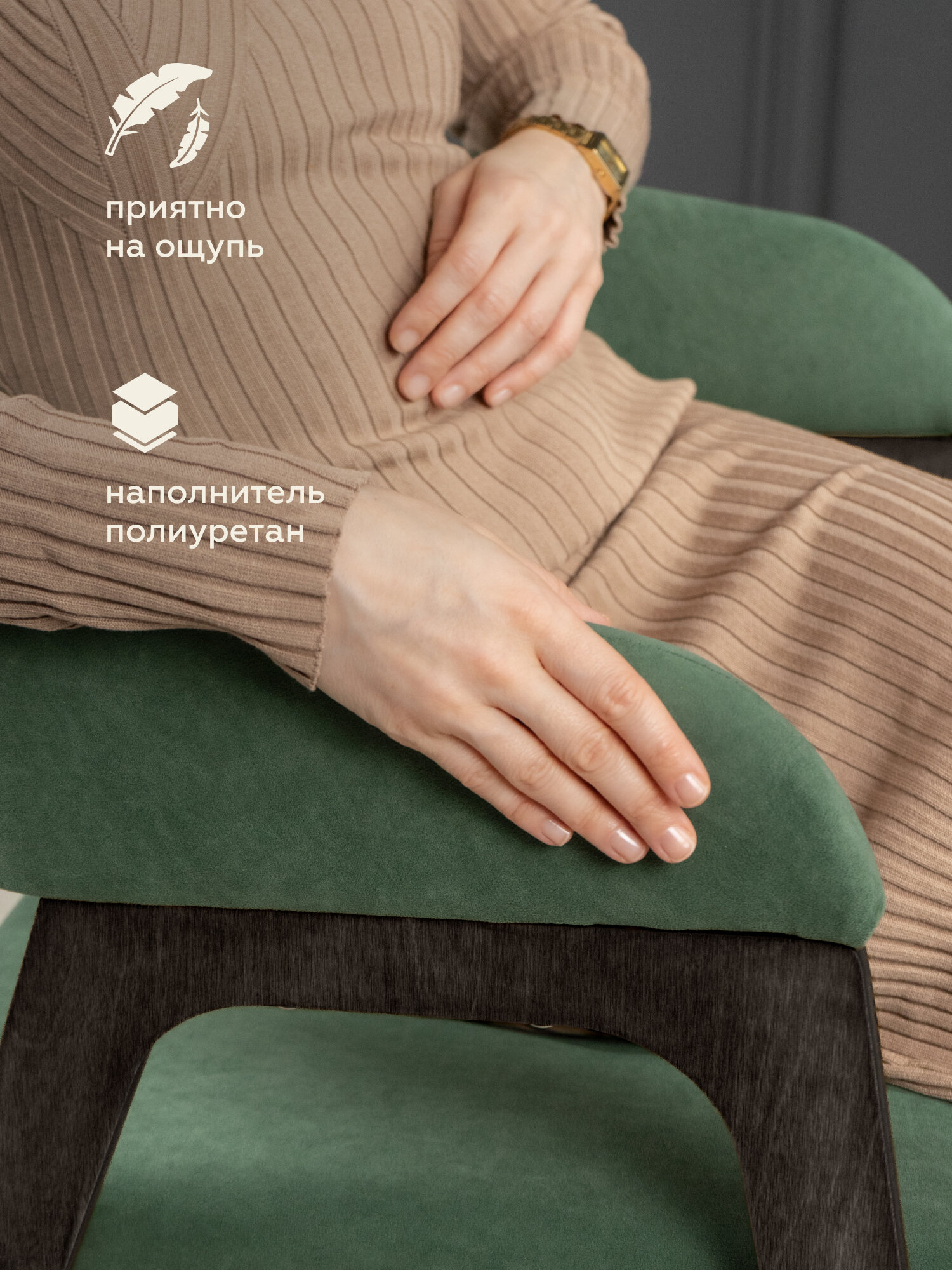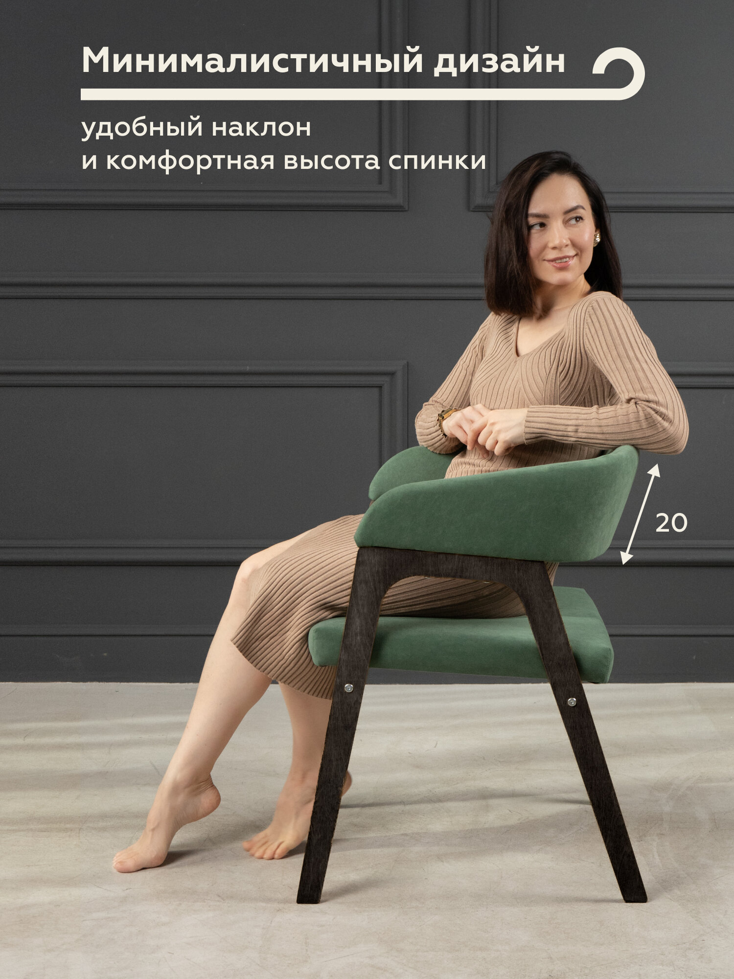 Кресло-стул с подлокотниками «лунница» от «Мягкой посадки», обивка зеленый велюр + черные ножки: сравнение цен, характеристики, фото, актуальное наличие и цены.