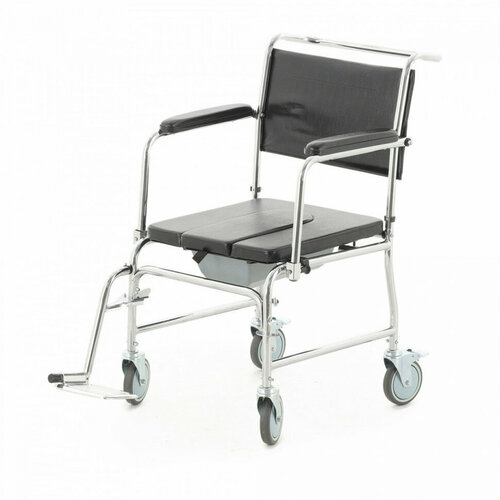 Каркас кресла-стула с санитарным оснащением изготовлен из стальных хромированных труб круглого сеченияНаличие держателя туалетного судна, позволяющего устанавливать и извлекать судно с сидящим на кресле-стуле человекомСпинка кресла-стула изготовлена из искусственной кожи (с мягким наполнителем) на жестком каркасе. Каркас спинки образует верхнюю перекладину-рукоять выгнутой формы для удобства перемещения кресла-стула сопровождающим лицом. Сиденье кресла-стула изготовлено из эластичного плотного материала на жестком ложементе, с обивкой из искусственной кожи. Сиденье съёмное, мягкое. Имеет гигиенический вырез и эргономичные закругления по бёдрамПодлокотники кресла-стула состоят из мягкого поручня и каркаса, могут откидываться вниз вперед и оснащены пружинными штифтами для фиксации в рабочем положенииПодножки кресла-стула на каркасе из стальных хромированных труб, раздельные, легкосъёмные, поворотные (с фиксацией в рабочем положении), с откидывающимися вверх рифлёными опорами для стоп ног из алюминиевого сплава. Крепление к раме производится посредством шарнирного устройства, с фиксацией в рабочем положении. Подножки оснащены поддержкой икроножной части ног. Передние и задние колёса на вилках из нержавеющей стали, самоориентирующиеся, с возможностью поворота на 360º, для облегчения движения и маневрирования вилка имеет наклонНагрузка - 100 кгХарактеристики: Страна производитель - Китай; Гарантия - 1 год; Материал - Сталь; Вес - 11,4; Размеры упаковки - 565 x 250 x 560 мм мм; Вес брутто - 13 кг; Грузоподъемность - 100; Регулировка высоты - Нет; Складной - Нет; Цвет рамы - Хром; Поворотные колеса - Да,360º; Тип конструкции - Не складная; Опускающиеся подлокотники - Нет; Туалетное устройство - Да; Подлокотник - Откидной; Страна изготовитель - Китай; Наличие колес - Да; Стояночные тормоза - Да; Бренд - Мед-мос;