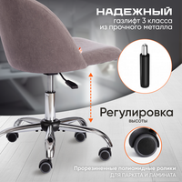мягкие подлокотники, прорезиненные колесики, мягкое сиденье, спинка из сетки, механизм качания