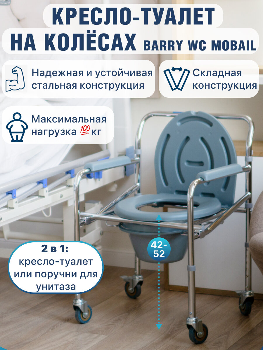 Кресло-туалет Barry «WC Mobail», на колесах, складное, с санитарным оснащением, для взрослых: сравнение цен, характеристики, фото, актуальное наличие и цены.