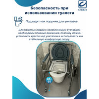 | Особенности | использование в качестве стула, откидываемая крышка, откидываемые подлокотники, противоскользящие наконечники ножек, противоскользящие подлокотники, регулировка высоты сиденья, съемная спинка, съемное санитарное оснащение, тормозное устройство на колесах |