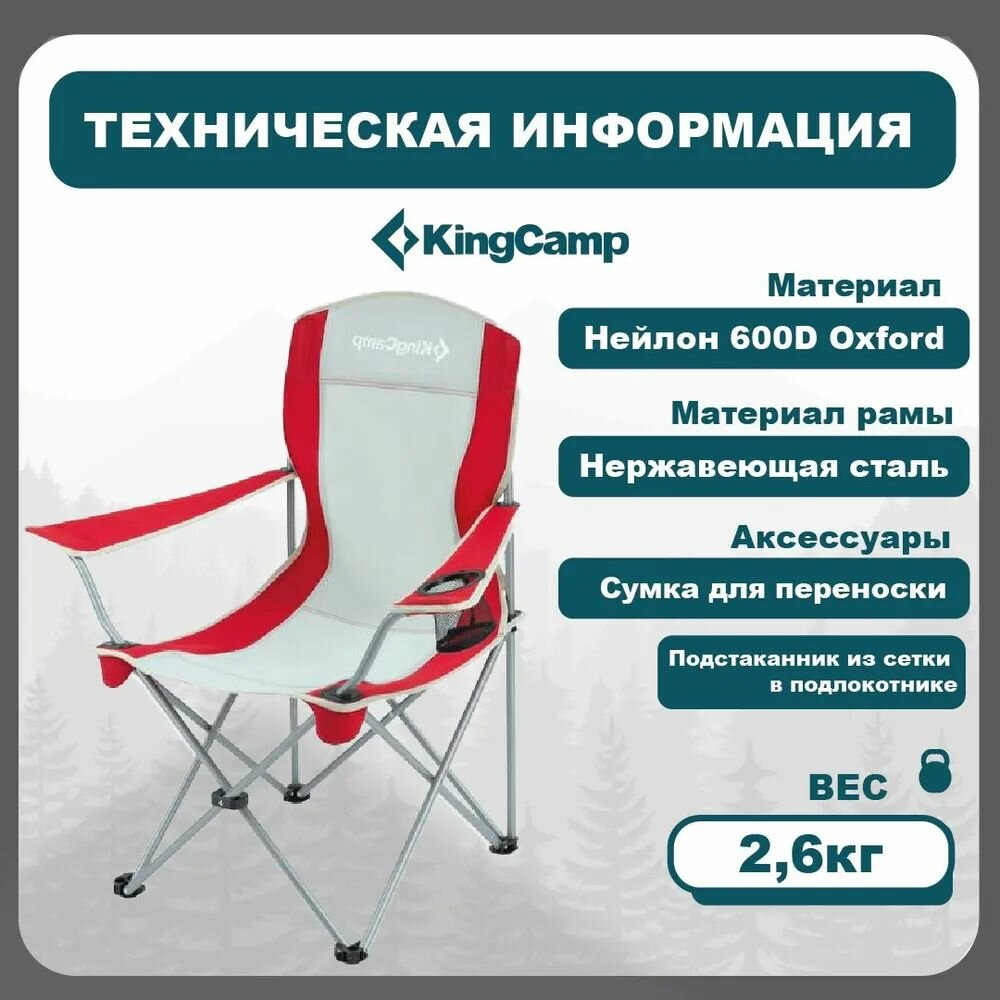 Кресло туристическое раскладное со спинкой KingCamp KC3818 Arms Chair Steel, цвет: красно-серый: сравнение цен, характеристики, фото, актуальное наличие и цены.