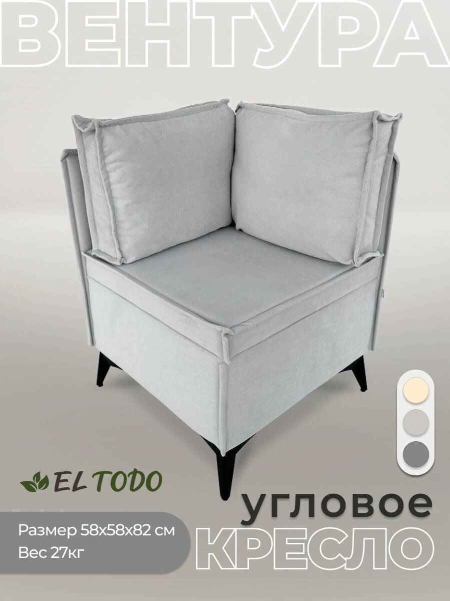 Кресло угловое EL TODO вентура на кухню, на балкон, в прихожую, велюр, светло-серый, 58х58х82 см (ШхГхВ): сравнение цен, характеристики, фото, актуальное наличие и цены.