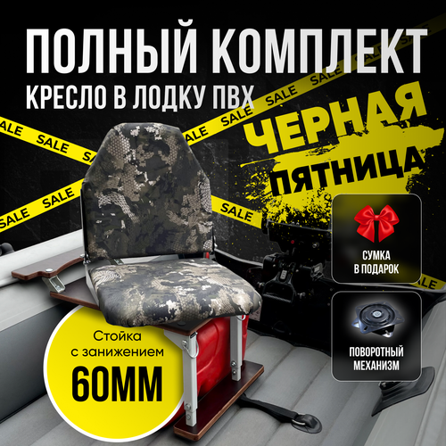 Кресло в лодку ПВХ Стойка складная Поворотный механизм Сумка