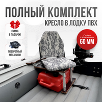Габариты комплекта в сложенном виде всего 53х45х23 см, что очень важно при перевозке в багажнике автомобиля - Кресло в лодку ПВХ - Металлическая поворотная платформа на подшипнике - Рама(стойка) с занижением 60 мм складная регулируемая - Сумка для комплекта в подарок! Покупая комплектом Вам не нужно задумываться о совместимости товаров, всё уже собрано! Поставил и поехал!