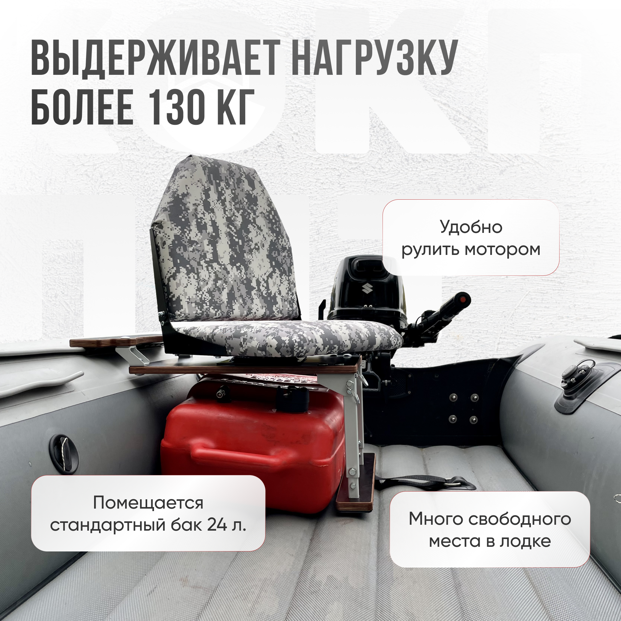 Полный, полностью собранный комплект для Вашей лодки с мягким креслом, за счёт универсальности стойки подойдёт практически на все лодки пвх/риб