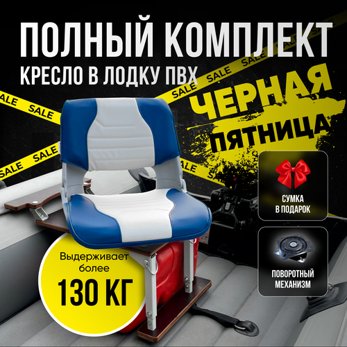 | Подробная комплектация | Кресло в лодку ПВХ Стойка складная Поворотный механизм Сумка |