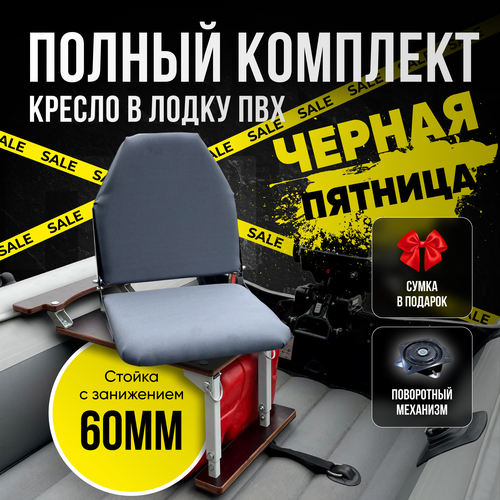 Кресло в лодку ПВХ Стойка складная Поворотный механизм Сумка