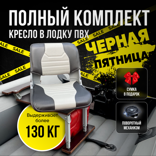 Кресло в лодку ПВХ Стойка складная Поворотный механизм Сумка