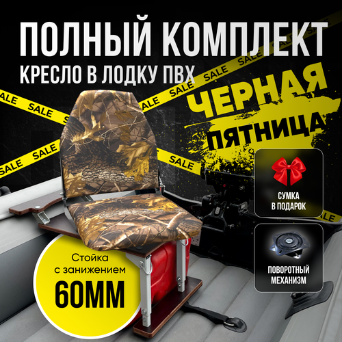 | Подробная комплектация | Кресло в лодку ПВХ Стойка складная Поворотный механизм Сумка |