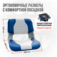 - Материал обивки - морской винил - Ширина сиденья 50 см! - высота спинки от сиденья 40 см - глубина 40 см - Проверены при весе в 130 кг - Вес всего ~3.4 кг - Подходит любой стандартный поворотный механизм, крепежные размеры 135х135 мм - В комплект входит набор нержавеющего крепежа для установки на любую стандартную поворотную платформу(размеры крепежа указаны на фото).