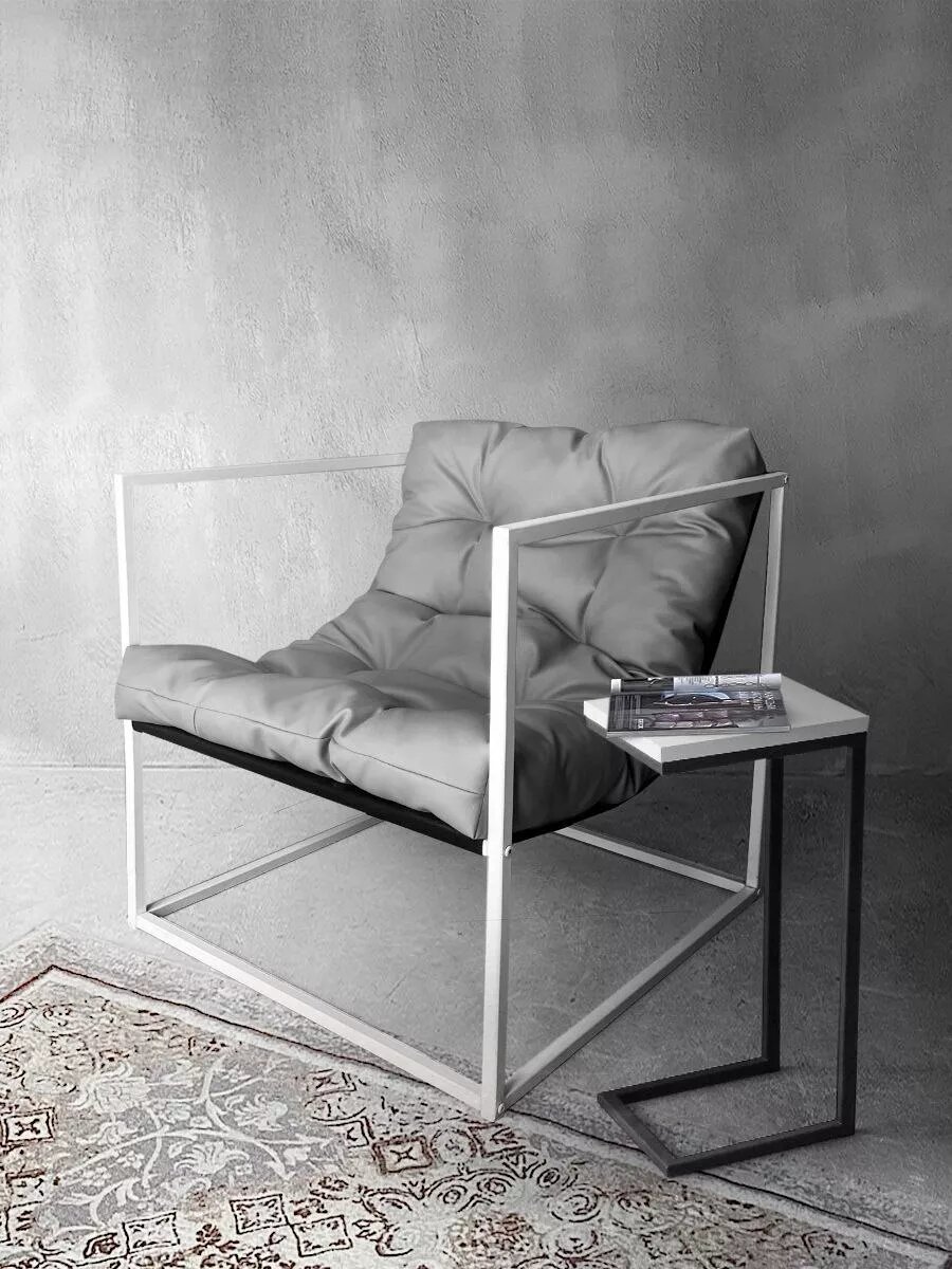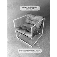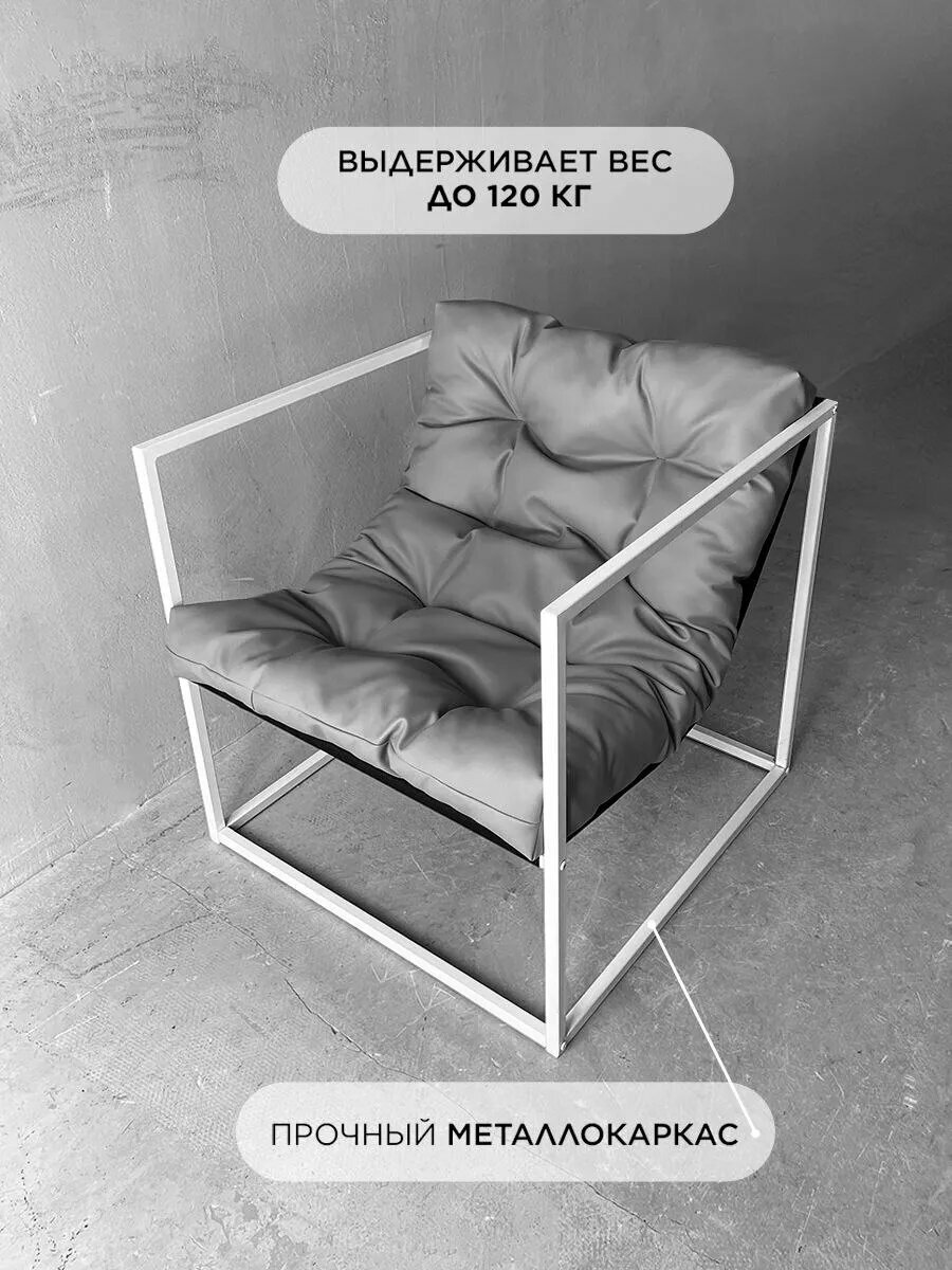 Кресло мягкое удобное для отдыха, уличное, на балкон, на веранду, в стиле лофт, минимализм, Лофтовик + серый кожзам: сравнение цен, характеристики, фото, актуальное наличие и цены.