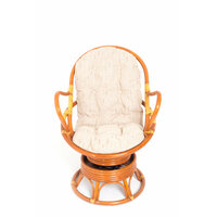 Каркас и спинка кресла изготовлены из натурального ротанга - очень прочного и безопасного материала. В качестве обивки для подушек используется ткань рогожка. Такая ткань широко используется при изготовлении мебели, так как она прочная, долго держит форму, не выцветает и не протирается.