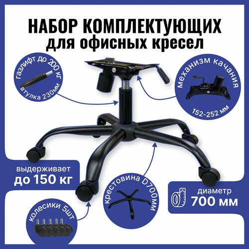 Крестовина 700 мм металл черный матовый с прорезиненными колесиками, газлифт 230мм 3 класс, механизм качания 152х252мм Top Gun, для офисного, компьютерного, игрового кресла, 1 шт: сравнение цен, характеристики, фото, актуальное наличие и цены.