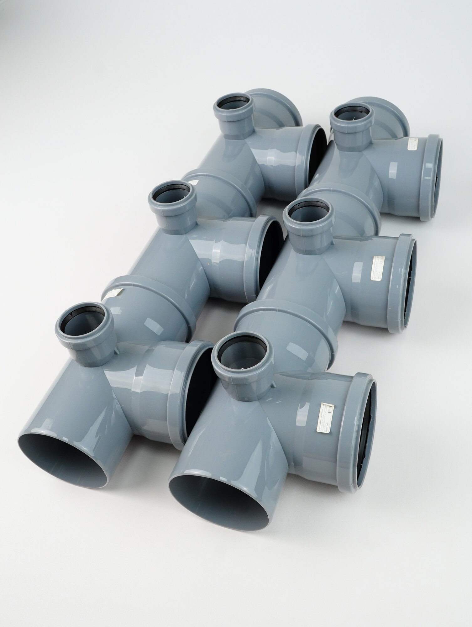 Крестовина канализационная 110х110х90°на 50х90° 2-х плоскостная левая. Крестовина двухплоскостная используется для слива сточных вод из двух плоскостей помещения, а также для отвода агрессивных вод. Канализационные фитинги изготовлены из полипропилена и сополимеров пропилена применяются для систем хозяйственно-бытовой канализации зданий при максимальной температуре постоянных стоков 80°C и кратковременных (в течение 1 мин.) стоков с температурой до 95°C при максимальном их расходе 30 л/мин. Внутренняя толщина стенок 2.7см. Монтаж желательно производить с применением специальной силиконовой смазки. Срок эксплуатации более 50 лет; Рабочая температура до 75°C трубы способны выдерживать кратковременное повышение температуры до 95°C; Раструбная конструкция, предусматривает использование уплотнительных двухлепестковых резиновых колец. Используемые в современной инженерии пластиковые трубы для канализации, фитинги и вспомогательные в (т. ч. крепежные) материалы, пользуются большим спросом. Это обусловлено большим количеством преимуществ нашей продукции: Отсутствие проблем с зарастающим сечением. На внутренней стороне труб из полипропилена практически не появляются отложения. Пластиковые трубы не подвержены коррозии. Низкий показатель теплопроводности обеспечивает отсутствие конденсата на наружной поверхности трубы. В отличие от труб из металла, они отлично гасят вибрации и шум, появляющиеся при прохождении по ним воды. Отсутствие необходимости выполнения подготовки труб перед их установкой, периодического окрашивания и т. д. Устойчивость к воздействию щелочных, кислотных сред и соли. Они более выгодны в монтаже и обслуживании. Возможность осуществлять монтаж быстро, с минимальным набором инструментов. Высокая надежность, которая достигается благодаря долговечности изделия и его устойчивости к вибрациям. Таким образом, канализационные трубы из полипропилена, являются современным и выгодным строительным материалом