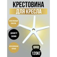 Крестовина (пятилучие) для компьютерных и офисных кресел, а также для стульев мастеров и т. д. На крестовине в месте установки газлифта присутствует металлическое кольцо, что делает конструкцию прочной и не дает газлифту раскачиваться. Внешний диаметр крестовины 56 см. Рабочая нагрузка до 120 кг. Совместима с 99 процентов кресел/стульев. Диаметр отверстия под газлифт 50 мм. Под крестовину подходят стандартные колеса, заглушки или глайдеры со штоком диаметром d11 мм.
