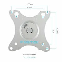 Кронштейн для крепления телевизоров и мониторов KROMAX OFFICE-21 SILVER надёжно удержит экран размером 17"-45" дюйма и весом 1-15 кг. Регулировка позволит вращать экран на 360°, наклонять вверх и вниз на ±90°, и поворачивать влево и вправо на 360° – для оптимального угла зрения и удобной посадки.
