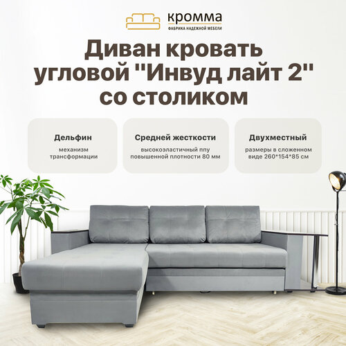 Угловой Диван — кровать со столиком Инвуд лайт 2 универсальный угол, велюр светло-серый: сравнение цен, характеристики, фото, актуальное наличие и цены.