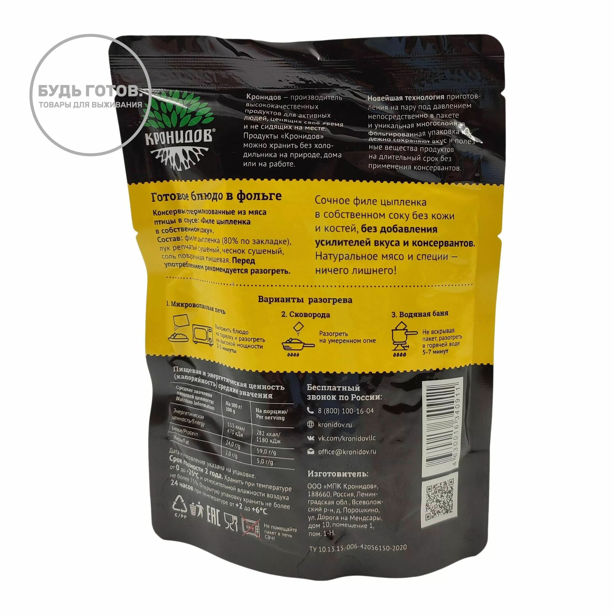 Купить Кронидов Филе цыпленка, готовая еда в пакетах. Еда в поход, в поезд, туристическая. Набор 3 шт по 250 гр с доставкой по всей России.