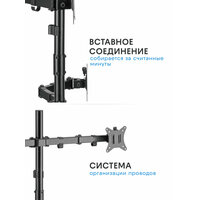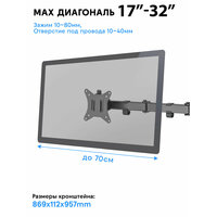 Угол наклона -45/+45°. Вращение -180/+180°. Поворот на -90/+90°. Полное выдвижение – 376мм. Высота столба – 803мм. Система организации проводов: есть. Размеры: 869x112x957 мм.